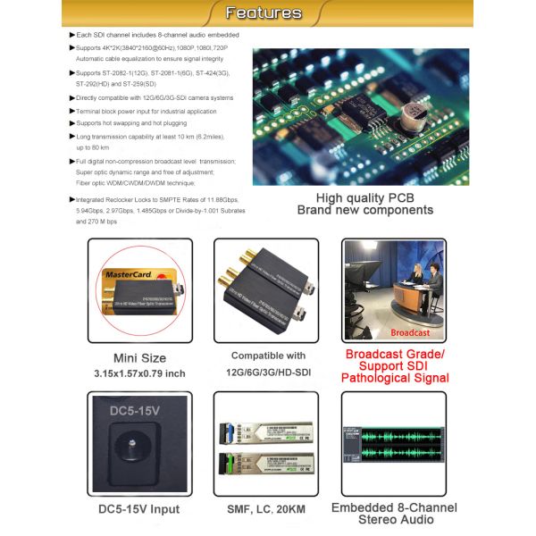 | Formats | Supports ST-2082-1(12G), ST-2081-1(6G), ST-424(3G), ST-292(HD) And ST-259(SD) |